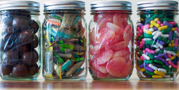 mason jars holding candies